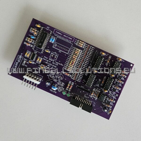 The Zaccaria Sound board 1B1125/evo is an evolution of the original 1B1125 board and is compatible with Shooting the Rapids, Hot Wheels, Fire Mountain & Star Gods* pinball machines.