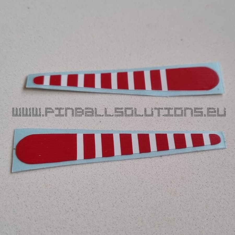 These stickers reproduce the original flipper bat’s stickers present on the Zaccaria’s Soccer Kings & Pinball Champ pinball machines but can be placed on any flipper bat you would like to personalize.